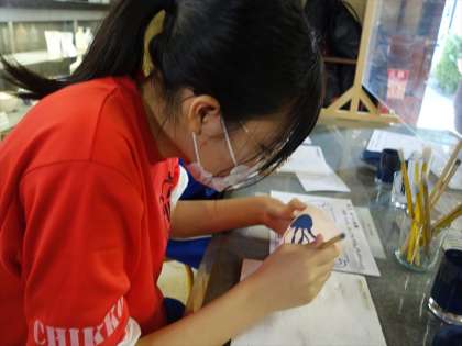 陶芸体験 絵付けの体験をしています。