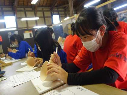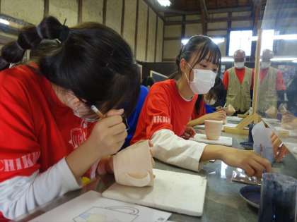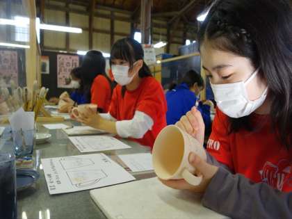 陶芸体験 絵付け体験をしています。