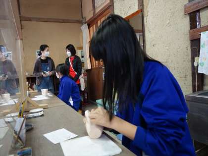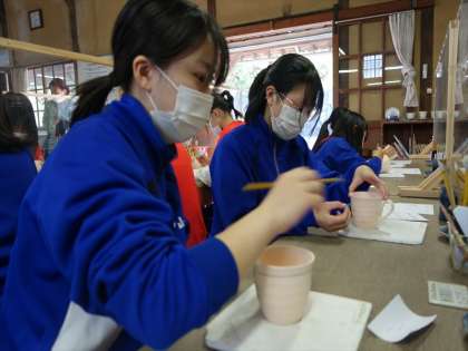 陶芸体験 絵付け体験をしています。