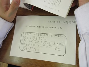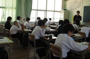 教師赴任1年目のフレッシュな泉先生の熱い道徳授業でした。生徒の中から様々な意見が発言されました。道徳の読み物授業では登場人物の心の動きに沿って自分も考えるという