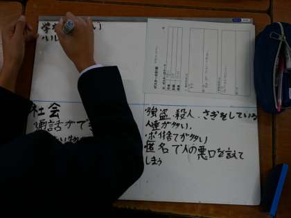 話し合ったことをまなボードにまとめて発表の準備をしています。