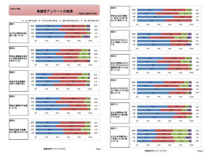 保護者アンケートにご協力ありがとうございました。集計結果ができましたので公表します。生徒・保護者アンケートの結果をもとに運営に関する計画の最終反省を行います。結果を来年度の目標設定に活かしたいと思います。