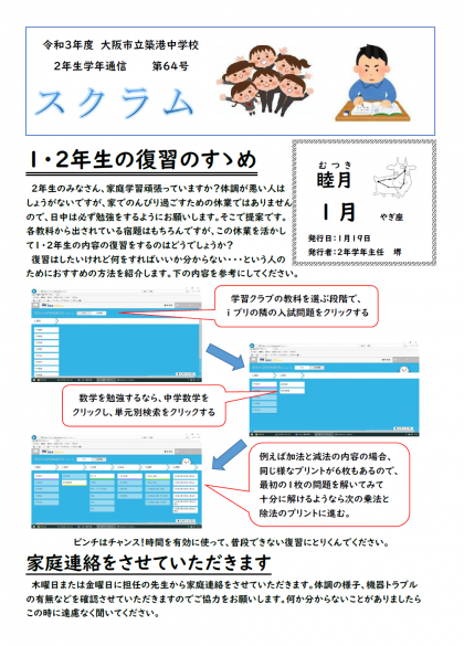 ここをクリック⇒2年生 学年通信64号
