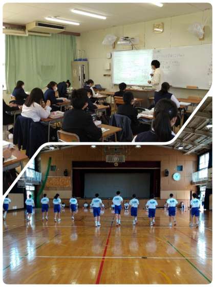 1年生と2年生は、合同で男女混合の体育です。体育館で、体力テストのシャトルランをしています。