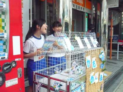 港郵便局では、道行く人に声をかけて、”かもめーる”を販売しています。