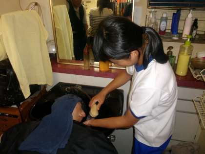 Cut in アルフでは、生徒同士でシャンプーの練習をさせてもらっています。