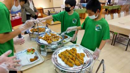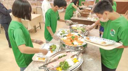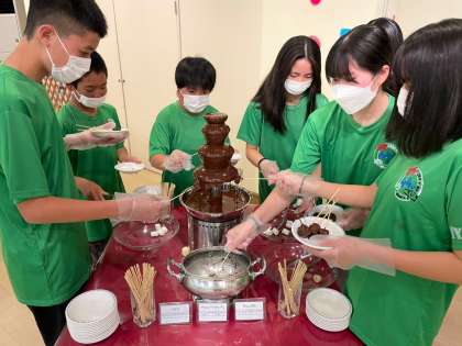夕食のバイキングを楽しんでいます。1番人気はチョコレートフォンデュです。