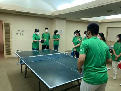 夕食後の運動、今日の夜レクは卓球大会です。修学旅行で卓球もめずらしいかもしれませんが、盛り上がってます。