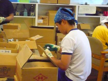 あいらぶ工房では、ネジを組む作業と、小さな塗り薬のケースの検品作業に分かれました。とても量が多くて大変でした。