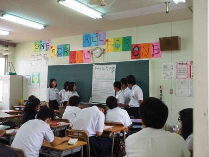 この発表の為に、班ごとに様々な思考をこらした模造紙を仕上げてきました。今日の発表で各クラスから代表班が選ばれる予定です。代表の班は8月6日(木)に予定されている登校日に、全体に向けて発表をする予定になっています。