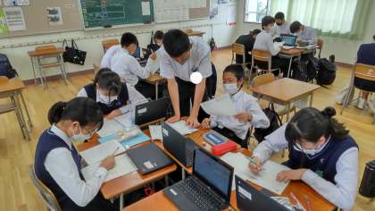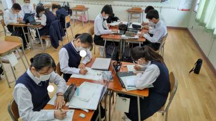 修学旅行の翌日にも関わらず、集中して因数分解に取り組んでいます。班になって教え合っているのも、修学旅行で深まったチームワークの賜物でしょうか。中間テストまであと10日、勉強頑張ってください。