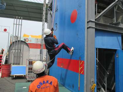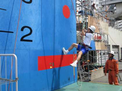 水上消防署(2日目)では、ロープ登りの体験をしました。とても力のいる活動で、みんな苦戦していました。翌日はみんな筋肉痛に悩まされたそうです。