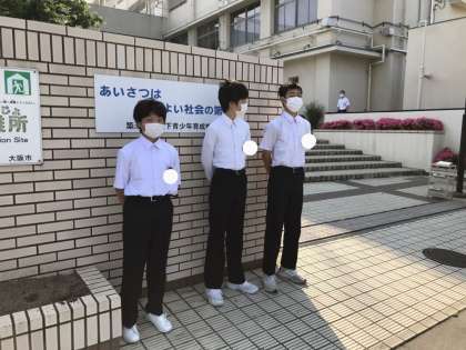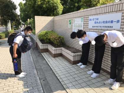生徒会のみなさんの爽やかなあいさつから1日が始まります。お互いに気持ちよく、あいさつを交わしましょう。