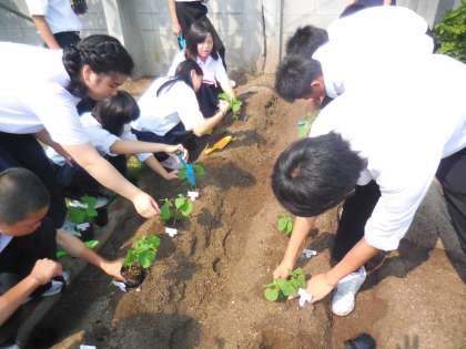 先週、校長先生が生徒のためにテニスコート前の畑にうねを作って頂いたものを活用させていただきました。