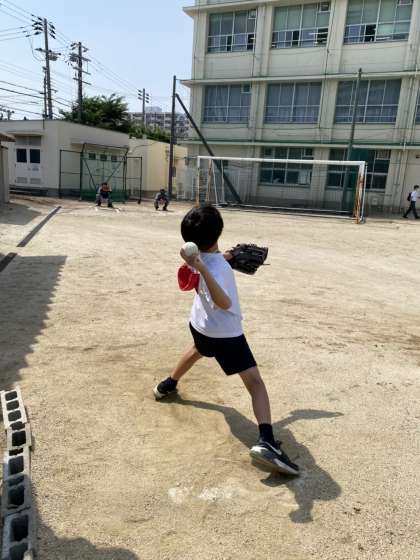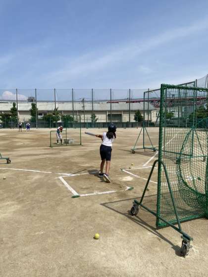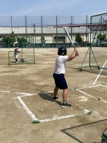 バッティングとピッチングの体験です。すでにレギュラーかのようなフォームですね。