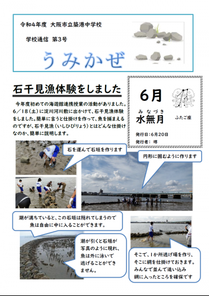 本校の海遊館部の活動が大阪府のHPに掲載されました。