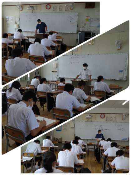 今日は風が強く窓を開けるとテスト用紙が飛びそう。