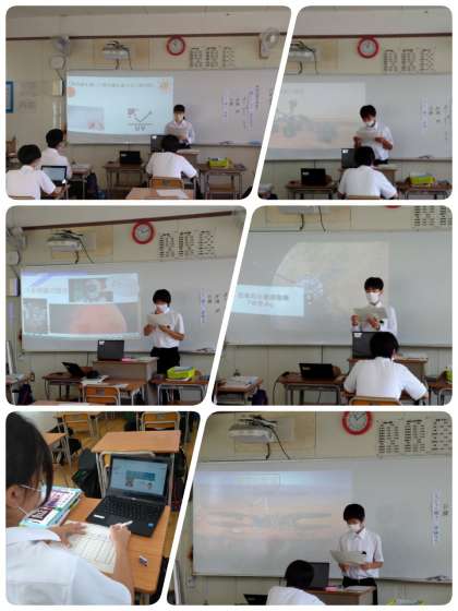 1人1台のPCを活用し、生徒がGoogleスライドを使い、調べてまとめたことを聞き手に伝わるように発表しました。