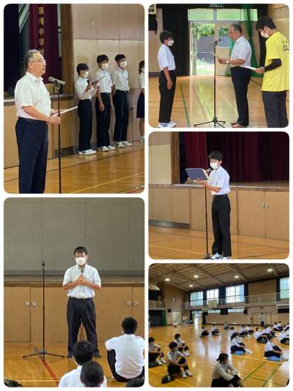 続いて、先週に生徒会が企画した「チャイム着席運動」の表彰がありました。