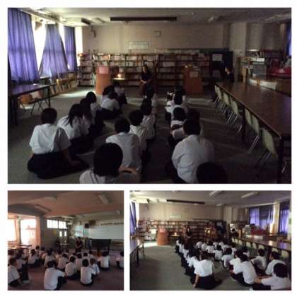 7月3日(金)の6限に図書室で1組、音楽室で2組が地域の方にお話をしていただいたり、絵本の読み聞かせをしていただきました。