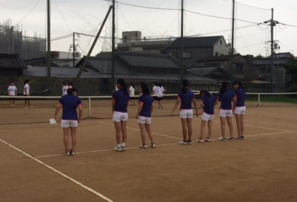 硬式テニス部は、7月4日(土)大阪市立淡路中学校にて、大阪中学校テニス選手権大会団体戦の部に出場しました。朝から小雨が降りつつく中、築港中学校からは2年生7名の選手が出場しました。結果は2回戦目、八尾市立曙川南中学校に2−3で負けてしまいました。しかし、3年生相手に非常によく頑張っていました。この試合で、他校も3年生が引退します。1、2年生しかいない築港テニス部のこれからの活躍に期待です。