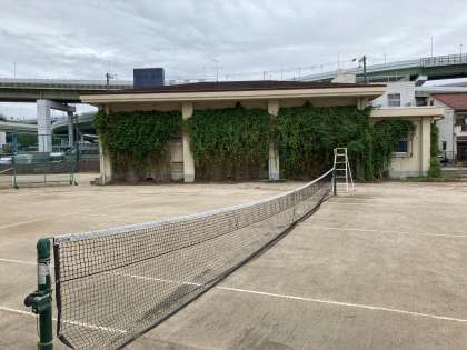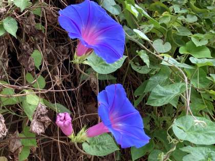 手前のテニスコートのすぐ横です。アサガオが咲いていました。
