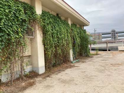築港中学校では、プール横の格技室の壁面を活用しています。