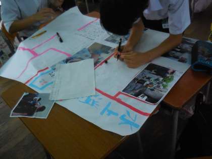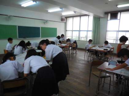 2年生は職場体験の総まとめとして、壁新聞作りに取り組んでいます。19の事業所に分かれそれぞれ工夫を凝らしています。職場体験の発表会を8日と10日に行う予定です。