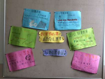 それを受けて、7月の図書委員会で、各クラスの図書委員のおすすめの本を紹介しています。