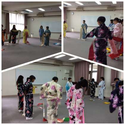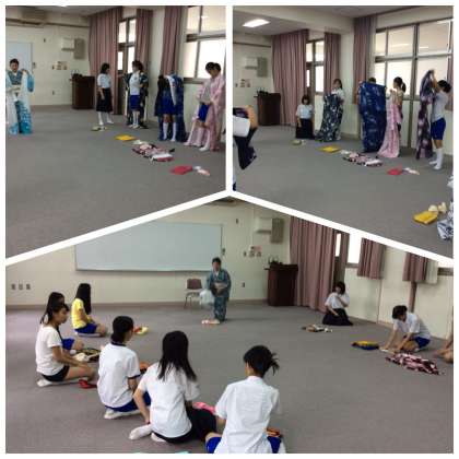 7月9日(木)放課後、学校元気アップ主催の「ゆかたの着付け教室」が行われ、2・3年生12名が参加しました。講師は磯中ミツ子先生です。着物や紐の扱い方から、着方、帯結び、最後はたたみ方までわかりやすく丁寧に教えていただきました。お祭りももうすぐです。手伝ってもらいながらも自分でゆかたを着て行こう!という気持ちになりました。ありがとうございました。