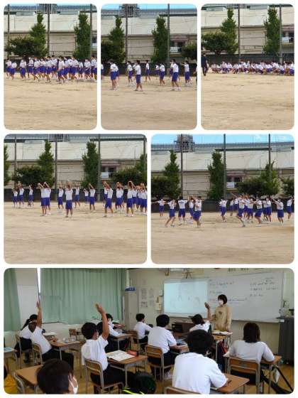 2年生と3年生は合同の体育で、来週の体育大会の練習をしています。