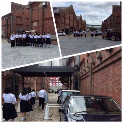 7月13日(月)3・4限、1年生がグループごとに、赤レンガ倉庫「クラシックカーミュージアム」の見学に行きました。大正12年に建設され、大阪に残る数少ないレンガ建築であり、レトロな雰囲気が満載です。築港のシンボルでもある赤レンガ倉庫をリノベーションし、1900年代のロールスロイスファントムをはじめ世界中から注目を集める代表的なクラシックカーが展示されています。