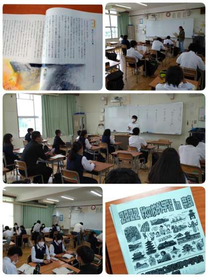 道徳を学習している1年生、校外学習の事前学習をしている2年生、先生の講話を真剣に聞いている3年生、どの学年もまじめに取り組んでいますね。