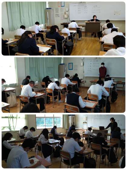 1時間目は理科、2時間目は国語、3時間目は技術家庭(1・2年生のみ)のテストです。