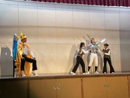 2年生による演劇[走れメロスたち]です。シナリオもしっかりしているうえに、セリフもとても聴き取りやすかったです。笑いあり感動あり、とても素晴らしい劇でした。