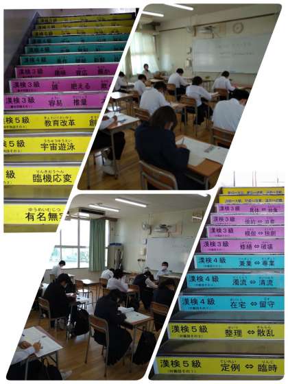 ちなみに築港中学校の階段で、漢字検定の学習ができます。