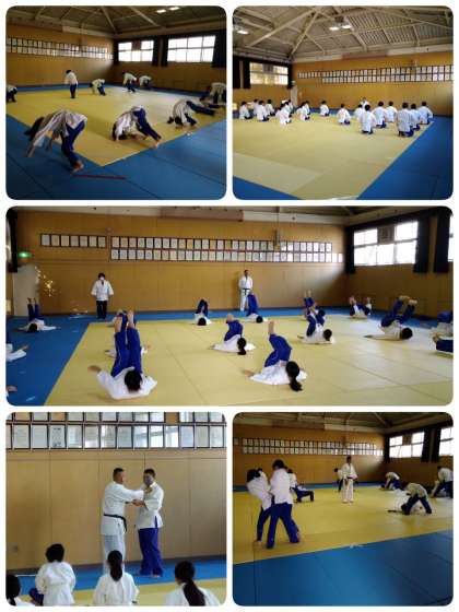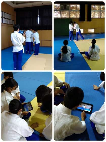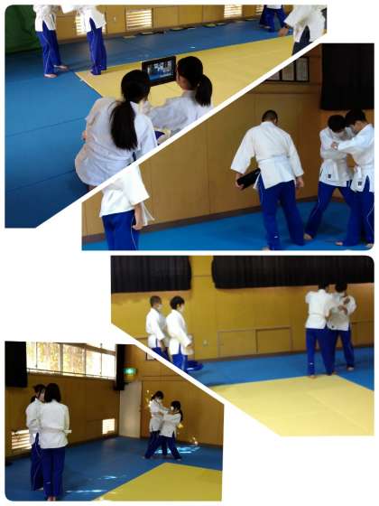 今日の保健体育は格技室で柔道の授業です。
