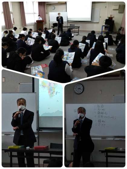 航海士や船長を経験され、その会社の社長までされた方の話は、とても興味深く生徒たちは聞いていました。