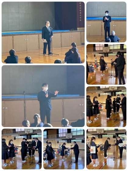 最後に、生徒指導主事の堺先生からは、先月の校外学習での写真コンクールの表彰についての話がありました。写真入りのとても素敵な表彰状が各班に手渡されました。
