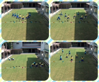 この日は体育館が使えなかったので、中庭の芝生に舞台を作り、踊りました。