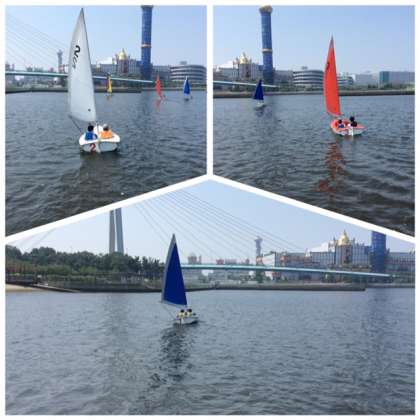 8月1日(土)、学校元気アップ事業で北港ヨットハーバーへ出かけアクセスディンギー(二人乗りヨット)を体験しました。昨年に引き続き、2回目の実施です。昨年とは違って絶好の天気となり、参加した生徒・先生・元気アップボランティアの方々は、心地良い海風を受けながらのヨットを楽しむことが出来ました。