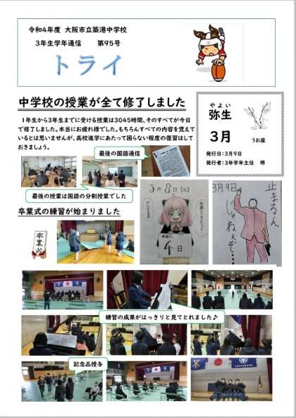 3年生 学年通信 95号(卒業式の練習が始まりました。)