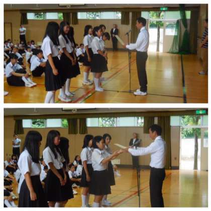 始業式でダンス部の賞状伝達がありました