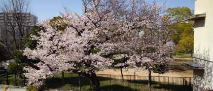 学校の玄関付近の桜がほぼ満開になっています。今年は例年になく早く咲いたようで、新学期が待ち遠しい思いです。
