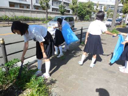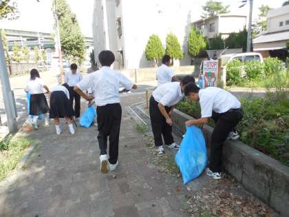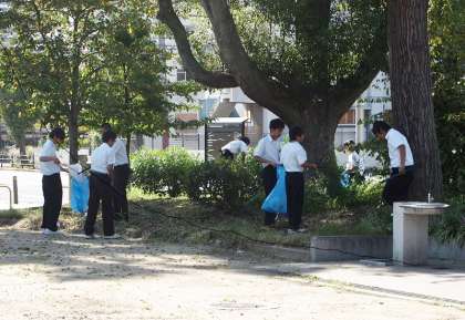 9月25日(水),2年生が男女二手に分かれて,公園内と学校の周囲を清掃しました。みんな火ばさみを片手にゴミを次々と集めて,終了するときには2つの大きなゴミ袋がいっぱいになりました。10月には小学生との清掃活動も予定されているので,その時にはぜひ良いお手本になってもらいたいです。