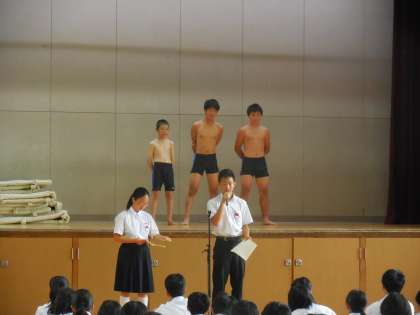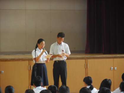 ※昨日の全校集会では、安全風紀委員会&生徒会有志によるコントを通じて、あいさつの啓発がおこなわれました。大変盛り上がり全校生徒におおいにアピールできました。