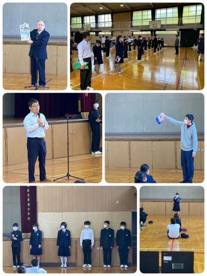 最後に、生徒指導主事の堺先生からは、「今日明日のこの2日間、授業に集中してしっかり頑張りましょう、頑張って達成感があるほど、楽しみも多くなる。」との話がありました。