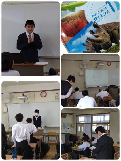 1時間目は1年1組で理科の研究授業、2時間目は2年1組で国語の研究授業です。