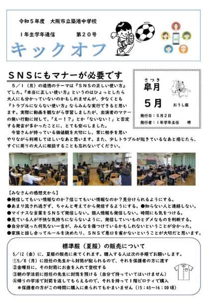 1年生学年通信 第20号(SNSにもマナーが必要です)