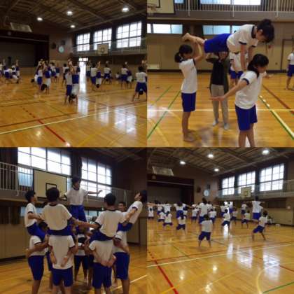 9月8日(火)の6限総合の時間、体育大会に向けて初めて組体操の練習を行いました。みんな気合十分に頑張っています!チームワークを大切に本番まで怪我のないように頑張りましょう。